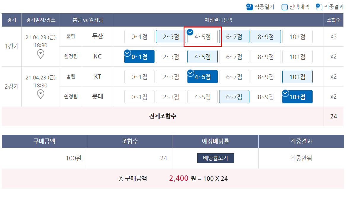2021.04.24 - [야구/야구토토 분석] - 21.4.24(토) 야구토토 KBO 5경기 승무패 브리핑 승부식 32회차