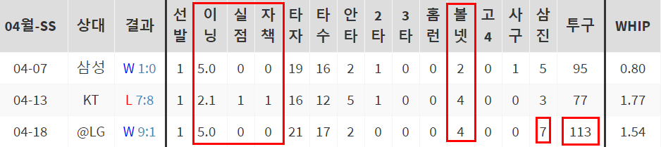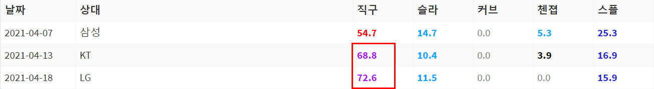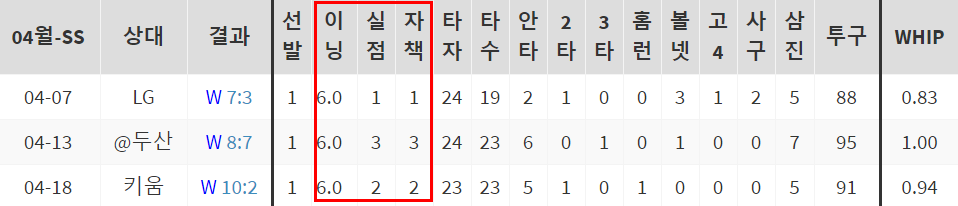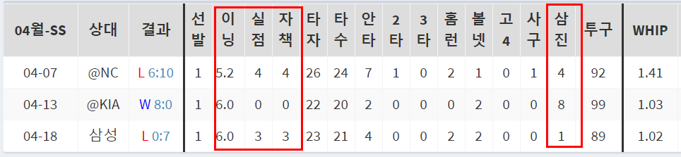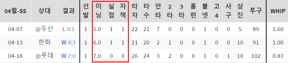 5이닝, 6이닝, 7이닝.. 그리고 8..??? 그리고 2경기 연속 10삼진... 우와..... 볼삼비가 무려 8.3,,, 그냥 국내 원탑 투수라고 보면 된다. 어떤 변화가 있었길래 이렇게까지 잘할수 있을까?