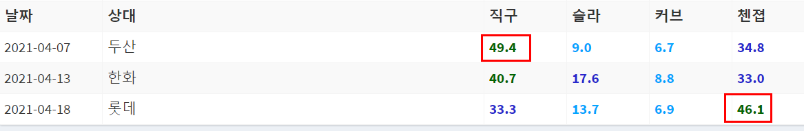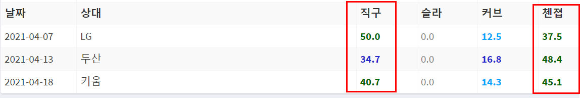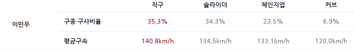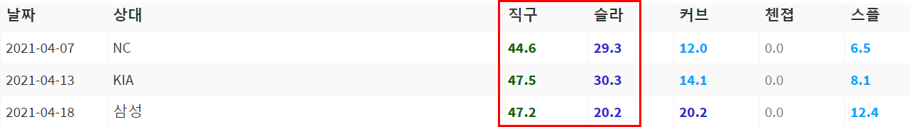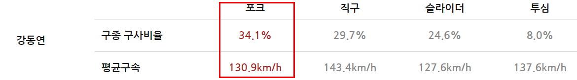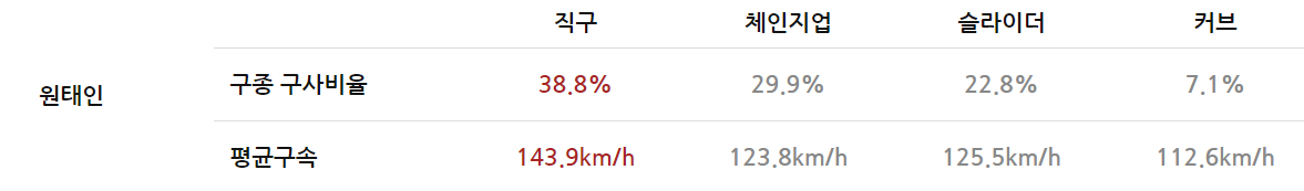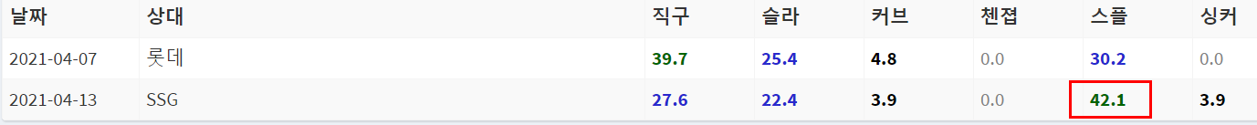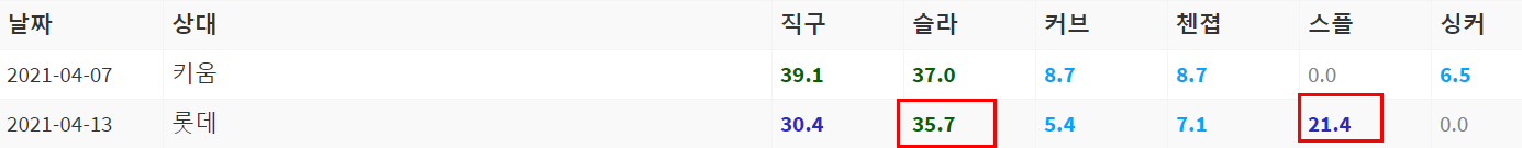 두번의 등판에서 구종의 변화가 있다고 분석이 된다.