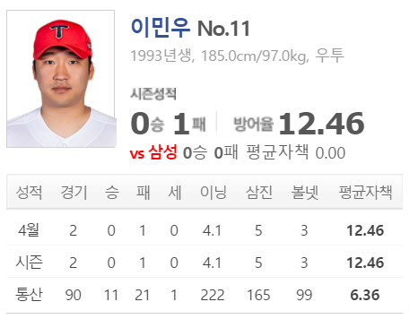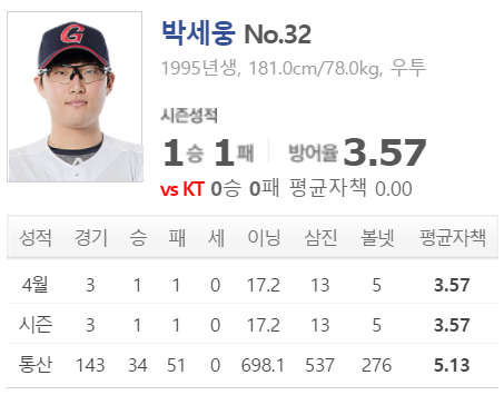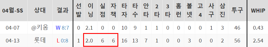 지난 13일 경기에서 호투를 하고도 11일만의 등판입니다. 좋았던 경기감각이 그대로 살아있을지, 아니면 오히려 푹쉬고 온만큼 더 좋은 공을 던질지 기대반 걱정반입니다. SSG의 오원석과 마찬가지로 롱맨으로 등판해서 기대이상의 피칭을 한 이후 선발로 낙점받았기때문에 기회를 잡기 위해서는 반드시 지난번과 같이 호투를 해야 하는 상황입니다.