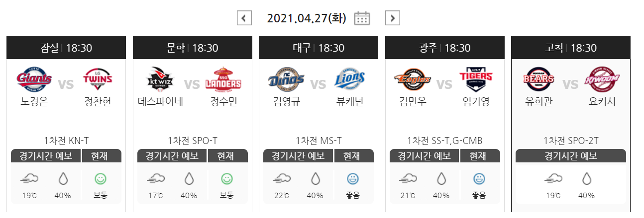 2021년 4월 27일 화요일 야구토토 KBO 5경기 승무패 분석