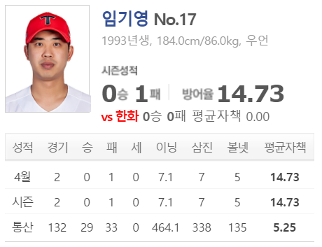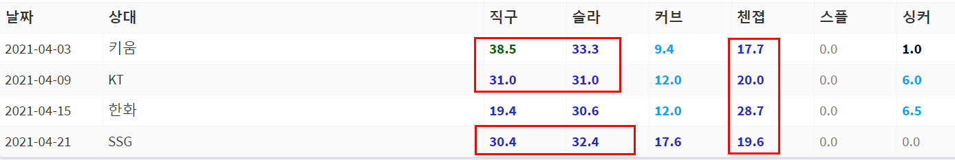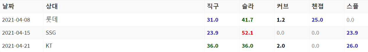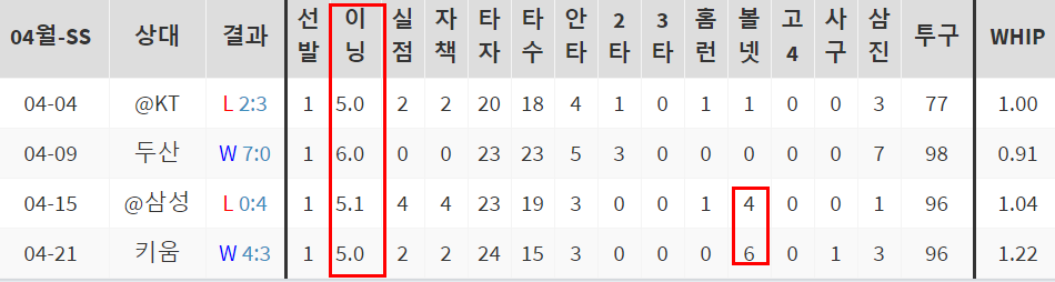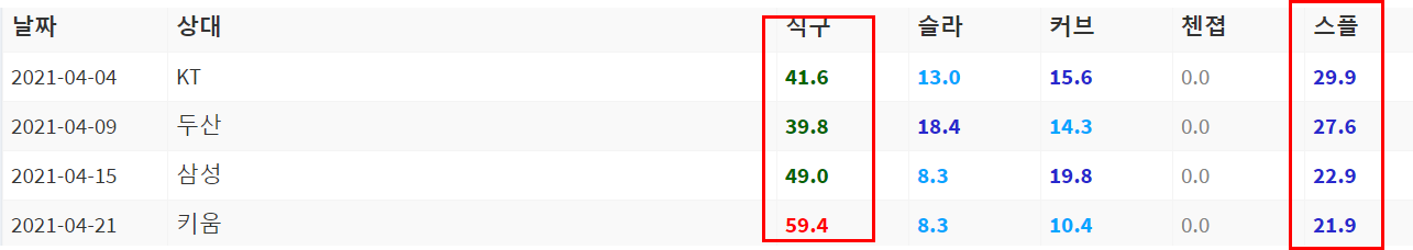 최근 2경기 제구불안의 문제가 있다. 무너지지는 않았지만 다소 아쉬운 부분은 분명히 있다. 임기영과의 승부에서 오히려 더 빨리 나가떨어질 확률도 있다. 기본적으로는