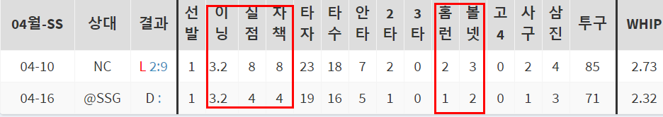 3경기 연속 3실점. 한계는 명확하다. 직구와 슬라이더 투피치 투수. 서드피치를 장착하고 싶지만 제구가 흔들린다. 결국 슬라이더로 승부를 봐야하는 뻔한 스토리. 직구구속은 140이지만 밋밋하다. 새로운 래파토리를 개발하지 못한다면 차라리 불펜으로 가서 좌완스페셜리스트로 남는게 좋아보인다.