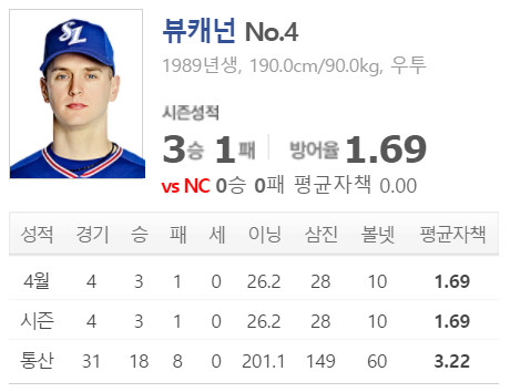 2. NC 김영규 vs 삼성 뷰캐넌 삼성승 ★★★☆