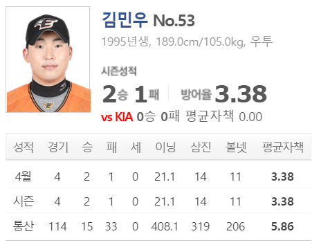 3. 한화 김민우 vs 기아 임기영 한화승 ★★☆