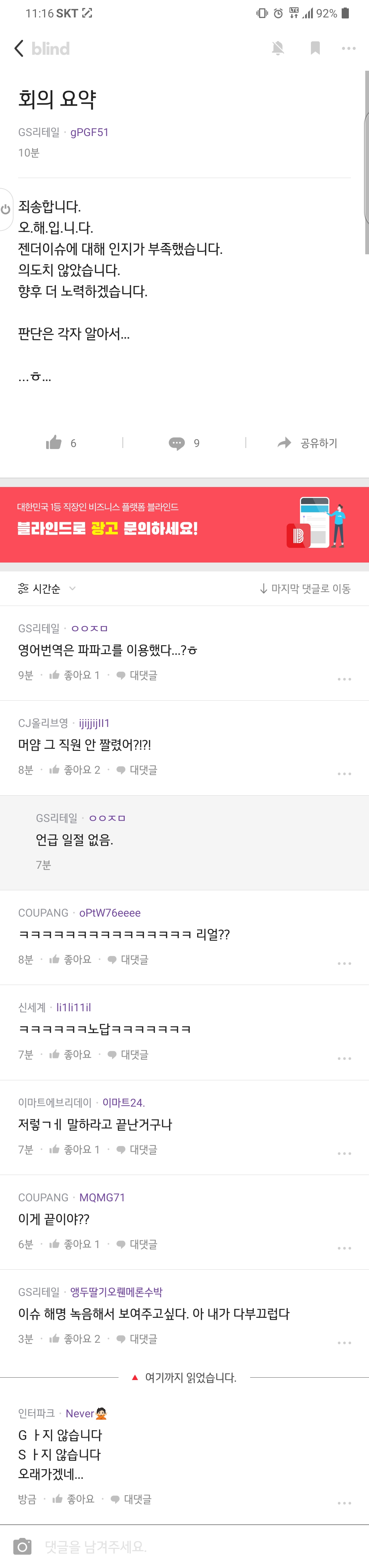 이쯤되면 한두명의 소행이 아니라 할수있다. 그동안 그들만의 우월함을 과시하기 위해 수없이 이렇게 대놓고 티를 내고있었던 것이다.